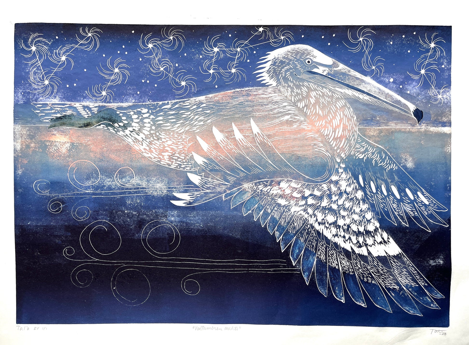 Jokaisessa vedoksessa on oman uniikin ilmeen lisäksi monotypiaa. Monotypia on kertaluontoinen kuva, joka tehdään tasaiselle alustalle, tässä tapauksessa suoraan telatulle linolaatalle.